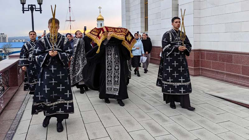 10 апреля, в Великую Пятницу, день воспоминания Святых спасительных Страстей Господа нашего Иисуса Христа, в Рождественском кафедральном соборе г. Южн...
