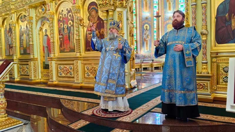 Его Высокопреосвященству сослужил ключарь кафедрального собора иерей Александр Брагин.