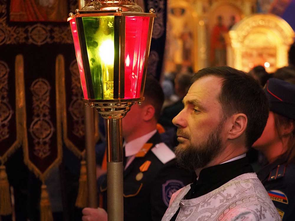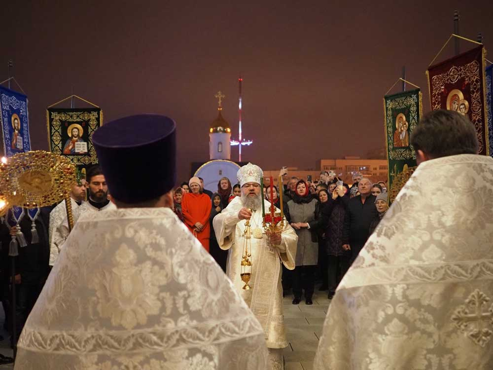 Под пение стихиры «Воскресение Твое, Христе Спасе» вокруг собора был совершен крестный ход. По традиции, за Пасхальной заутреней ключарь собора прочитал Слово огласительное святителя Иоанна Златоуста на Святую Пасху.