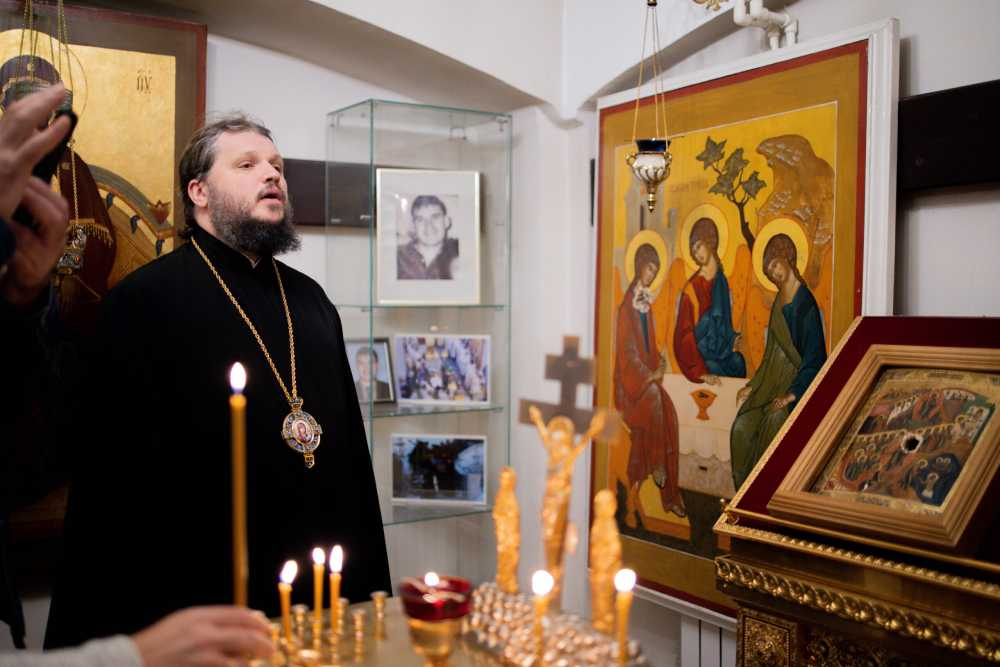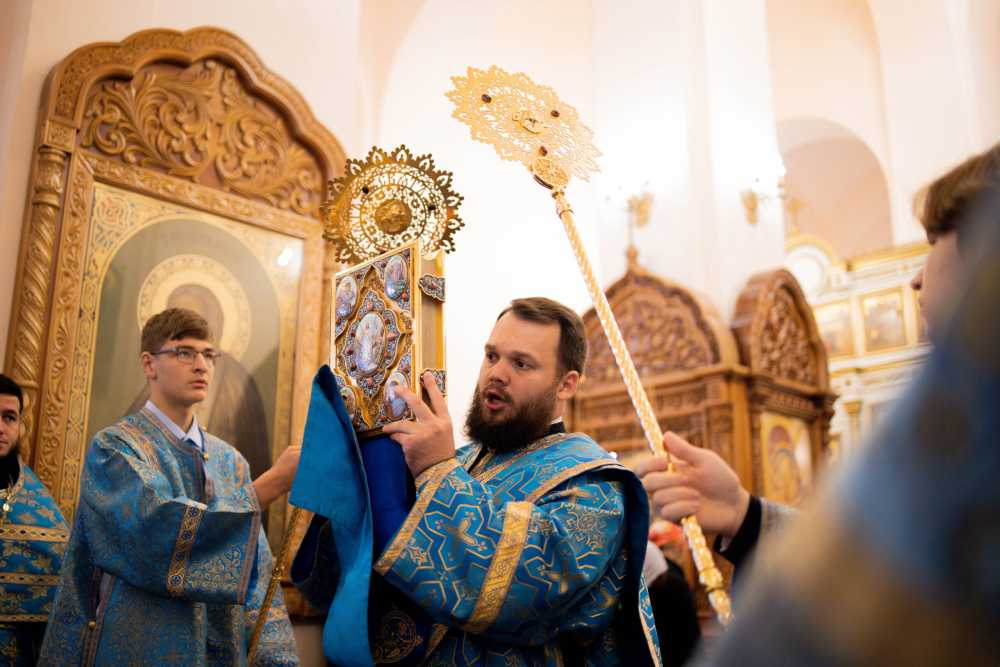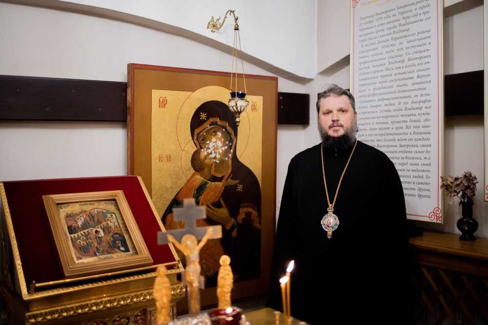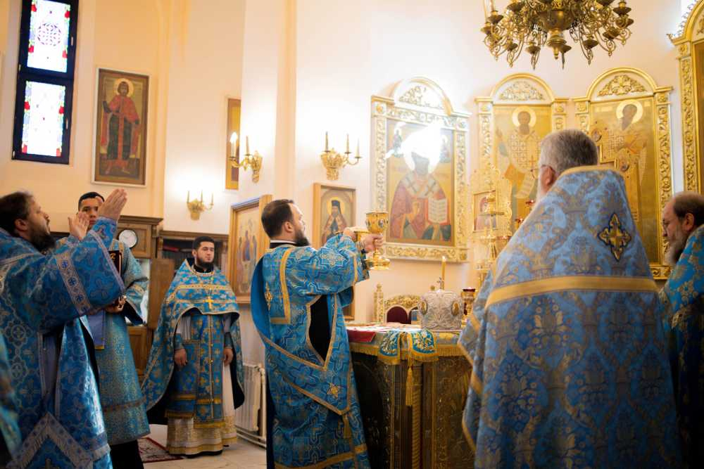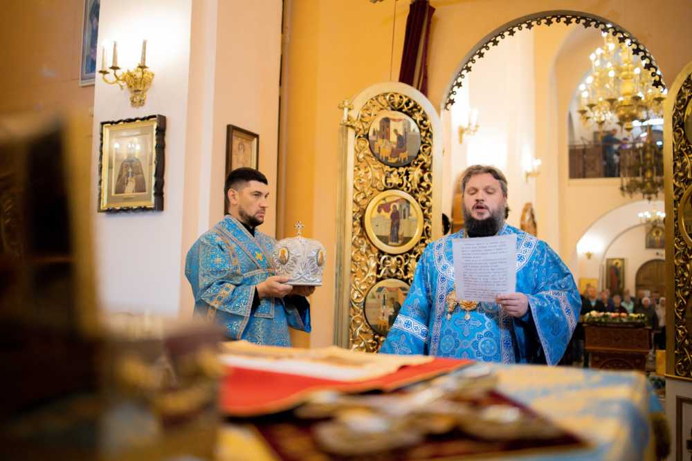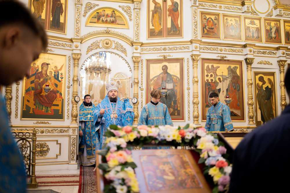 По окончании богослужения епископ Николай посетил нижний храм Воскресения Словущего, где помолился перед иконами, расстрелянными злоумышленником во время нападения на собор в 2014 году.