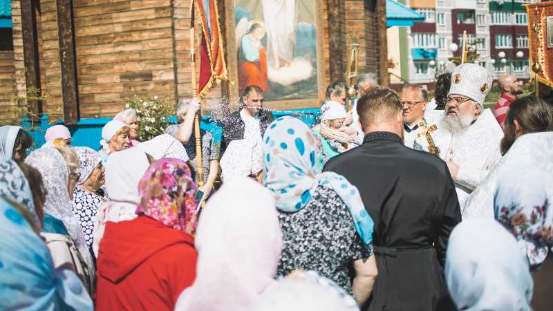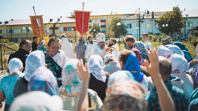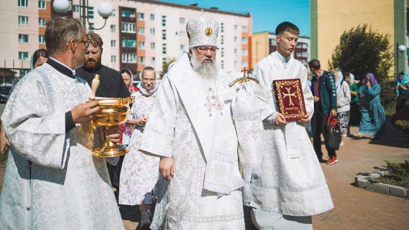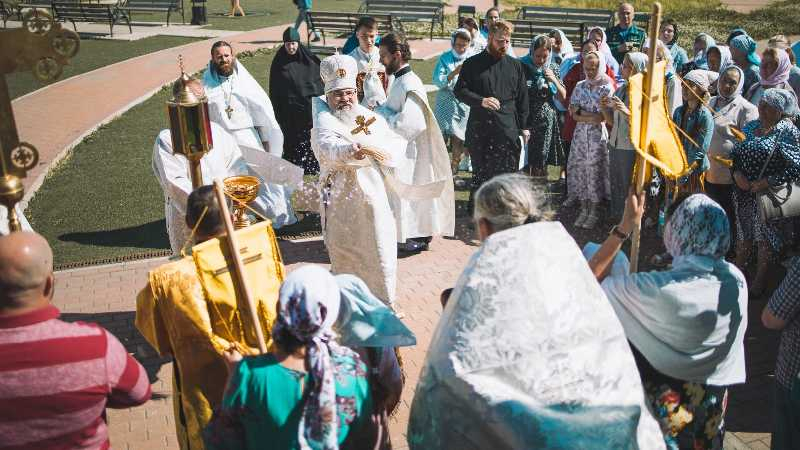 В завершение Литургии был совершен крестный ход вокруг храма, далее иерарх обратился к присутствующим с проповедью.