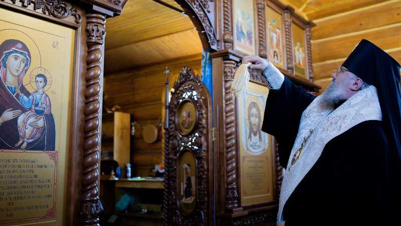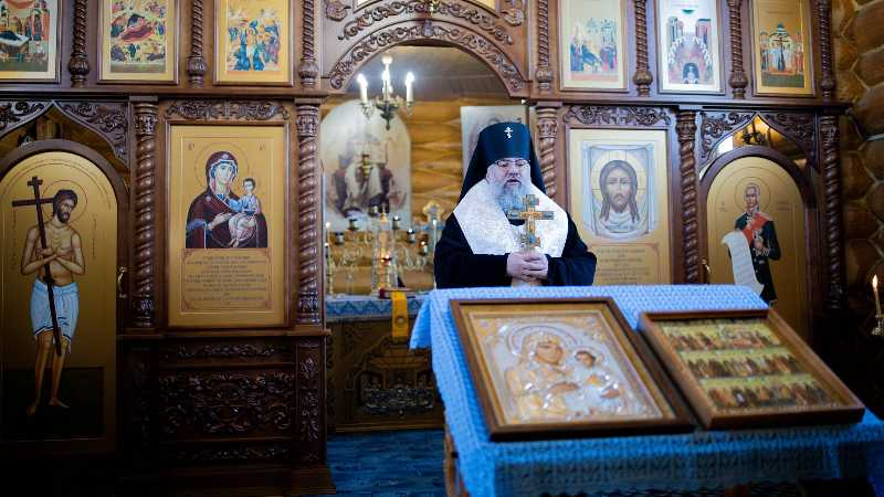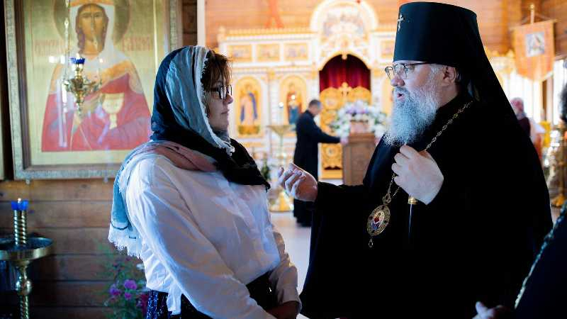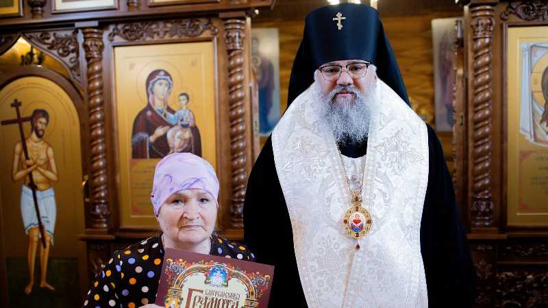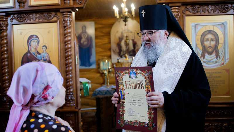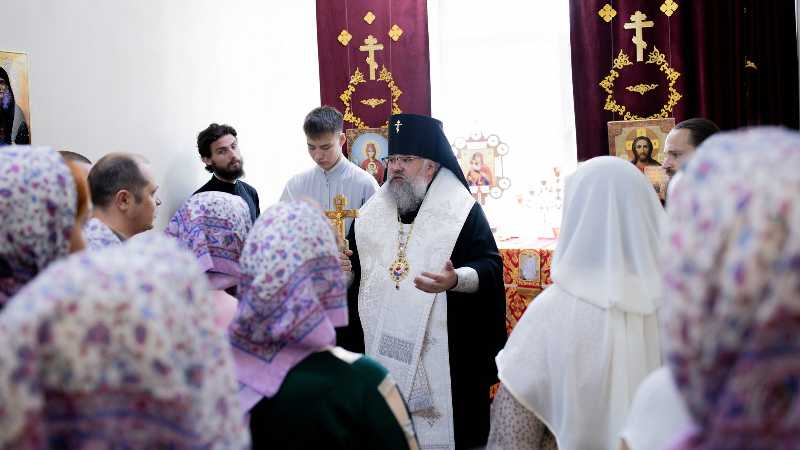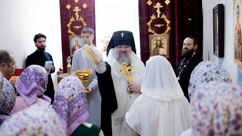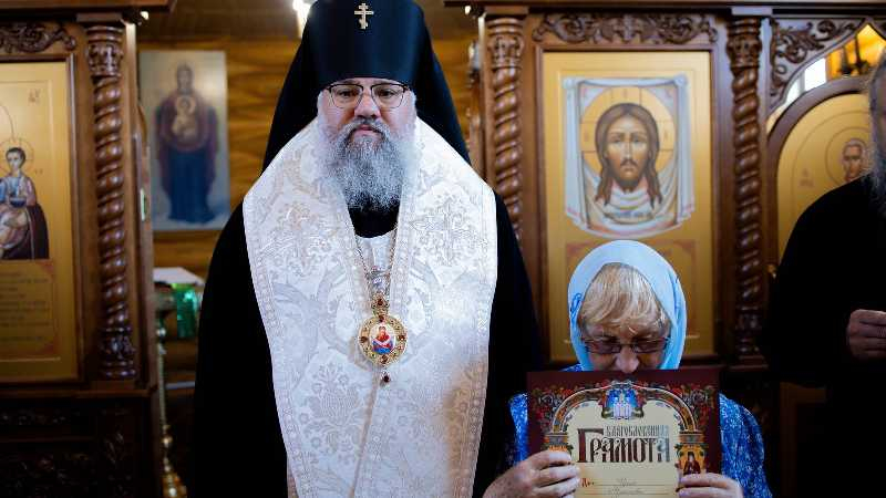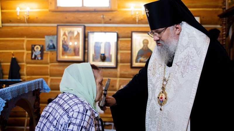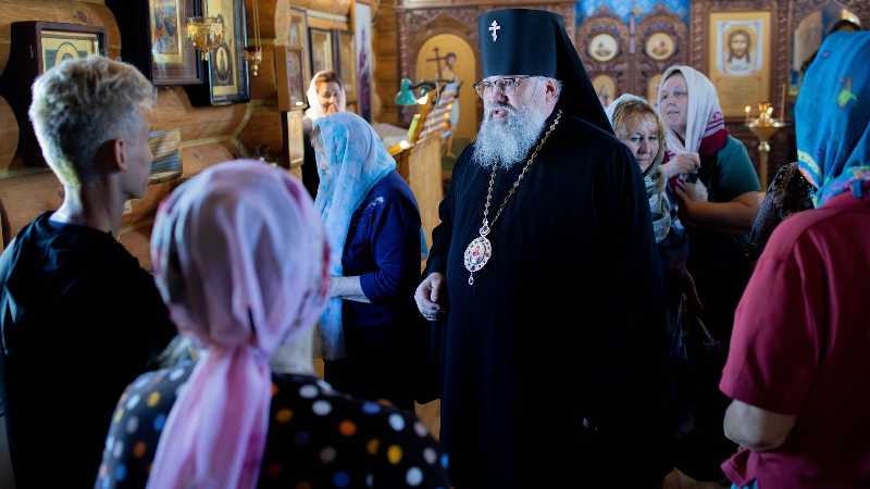 В этот же день владыка Никанор посетил храм Иерусалимской иконы Божией Матери с. Красногорск, совершив там освящение нового иконостаса, сооруженного в память о погибших бойцах добровольческого отряда «Т» им. А.В. Суворова.