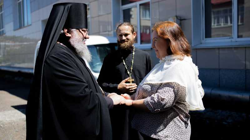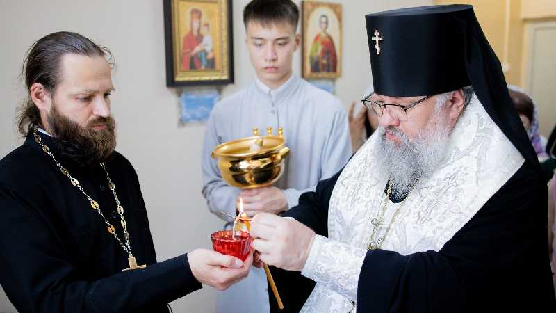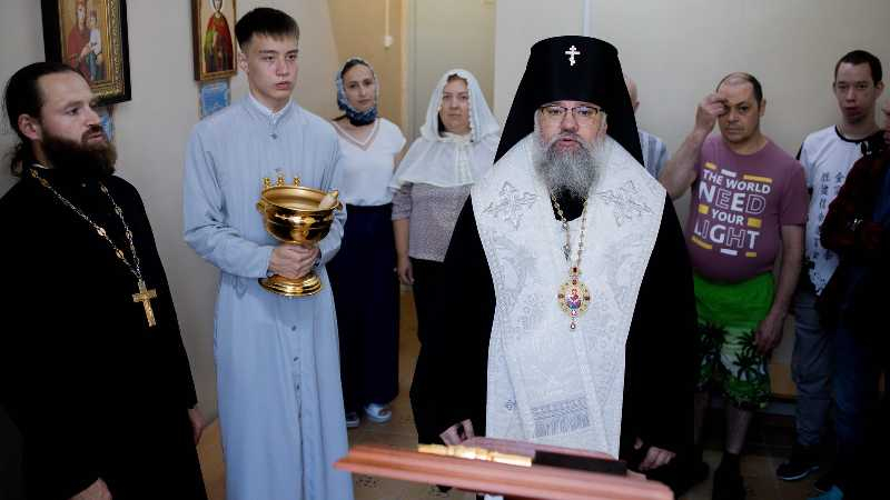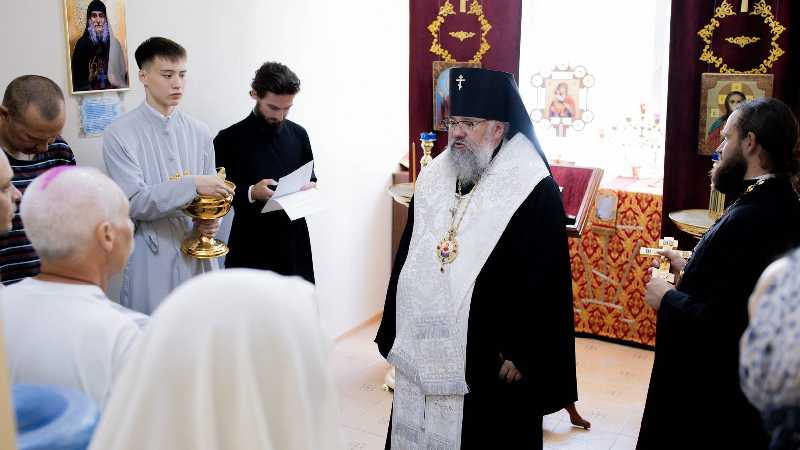 По окончании богослужения архипастырь посетил Углегорский психоневрологический интернат, где совершил чин малого освящения храма в честь преподобного Гавриила Самтаврийского, устроенного попечением директора учреждения Ольгой Киселевой и трудами постояльцев интерната.