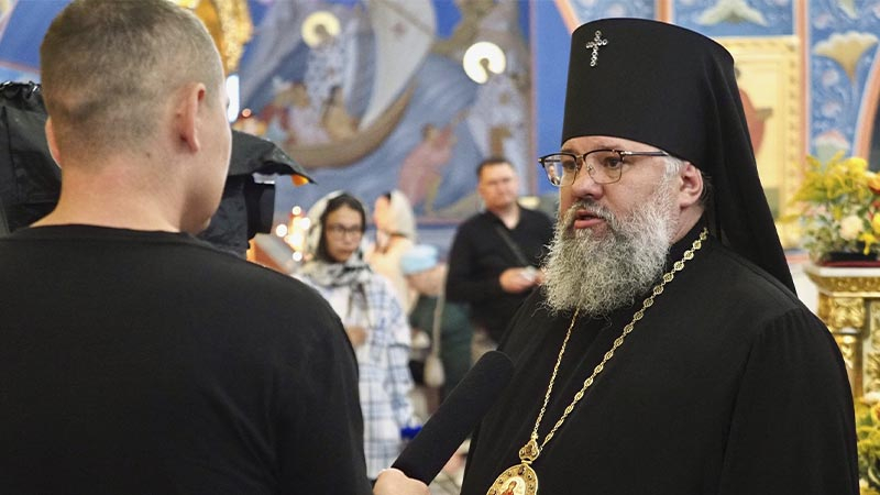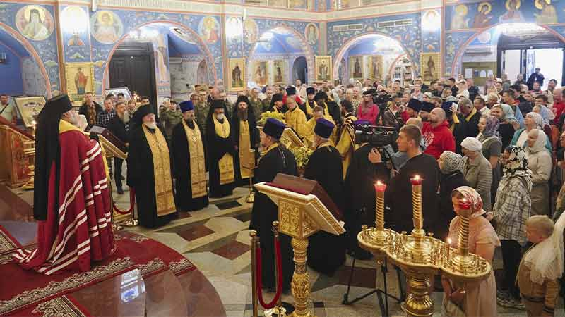 Далее ковчег с частицей мощей был доставлен в кафедральный собор Рождества Христова, где архипастырь возглавил молебное пение святителю Тихону.