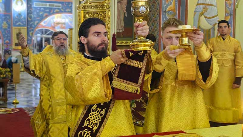 27 августа, в день перенесения мощей преподобного Феодосия Печерского, архиепископ Южно-Сахалинский и Курильский Никанор в сослужении соборного духовенства совершил Божественную литургию в кафедральном соборе Рождества Христова г. Южно-Сахалинска.