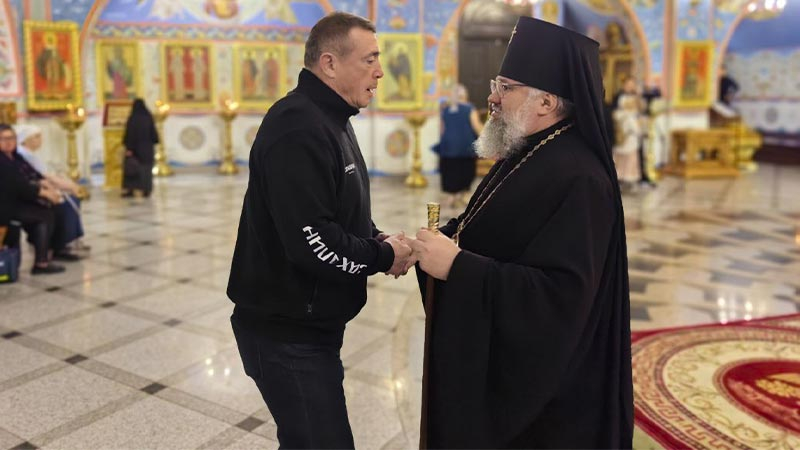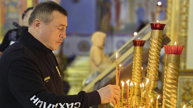 На богослужении присутствовал губернатор Сахалинской области Валерий Лимаренко.