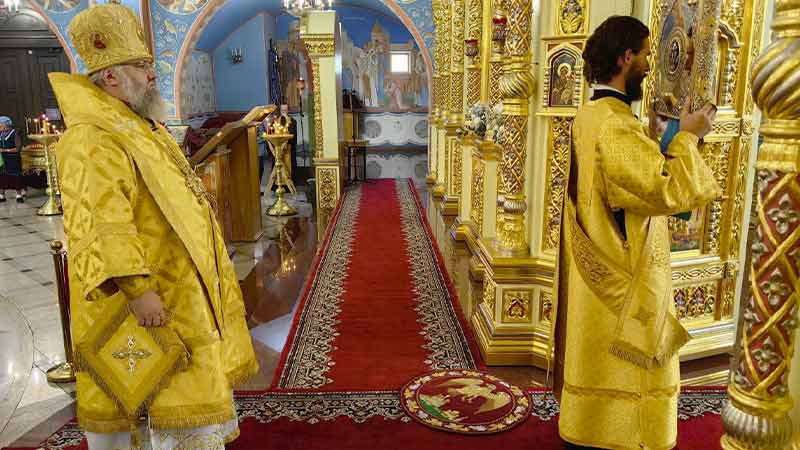 На сугубой ектении были вознесены особые прошения. После сугубой ектении владыка Никанор вознес молитву о Святой Руси.