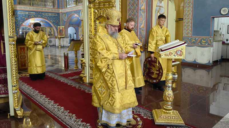 29 августа, в день праздника перенесения из Едессы в Константинополь Нерукотворенного Образа (Убруса) Господа Иисуса Христа, архиепископ Южно-Сахалинский и Курильский Никанор в сослужении соборного духовенства совершил Божественную литургию в кафедральном соборе Рождества Христова г. Южно-Сахалинска.