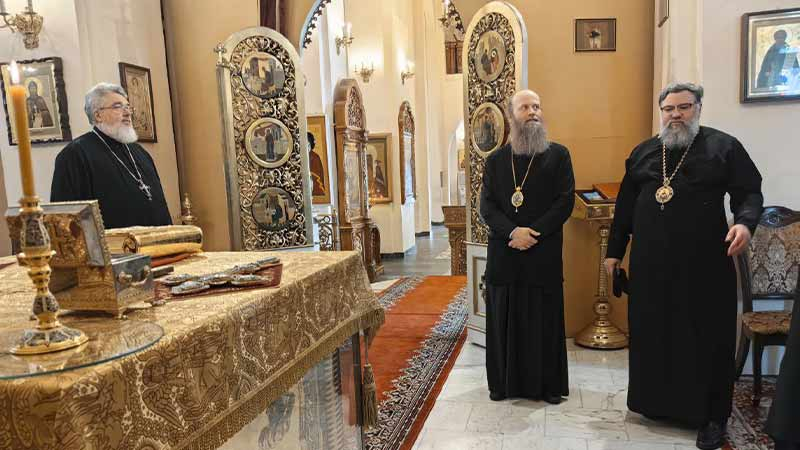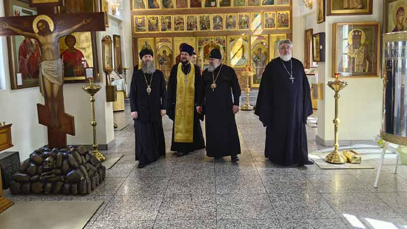 В поездке Его Преосвященство сопровождает благочинный ставропигиальных приходов и Патриарших подворий вне города Москвы иерей Алексей Дроздов.