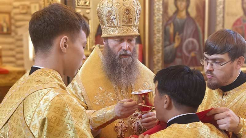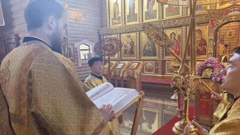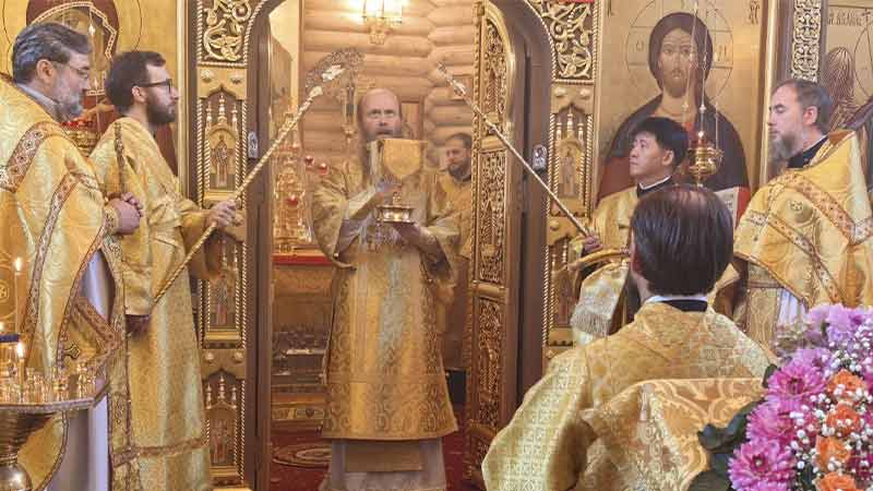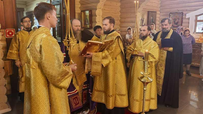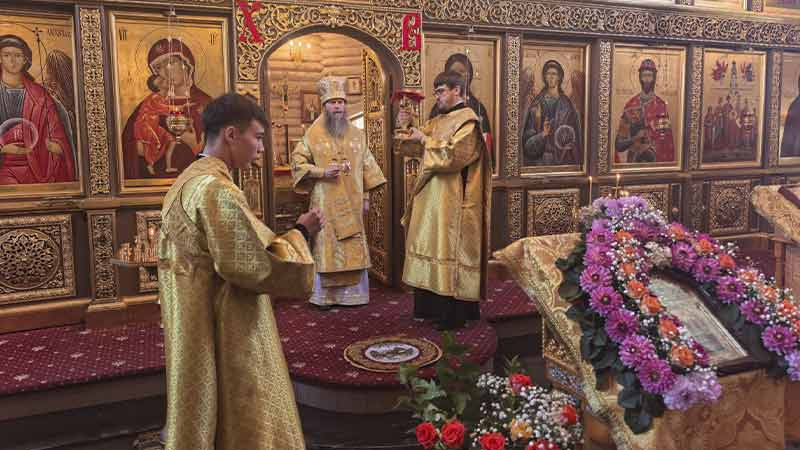 Иерарху сослужили благочинный ставропигиальных приходов и Патриарших подворий вне города Москвы иерей Алексей Дроздов, настоятель подворья протоиерей Сергий Мощенко, духовенство Москвы и Южно-Сахалинска.