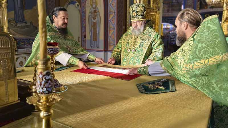 На сугубой ектении были вознесены особые прошения. После сугубой ектении владыка Никанор вознес молитву о Святой Руси.