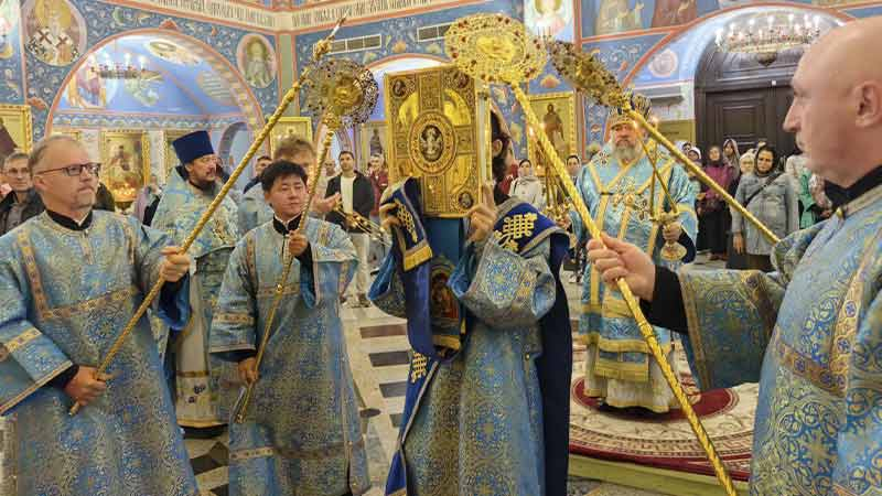 21 сентября, в Неделю 15-ю по Пятидесятнице, перед Воздвижением и день праздника Рождества Пресвятой Владычицы нашей Богородицы и Приснодевы Марии, архиепископ Южно-Сахалинский и Курильский Никанор совершил Божественную литургию в Христо-Рождественском кафедральном соборе г. Южно-Сахалинска.