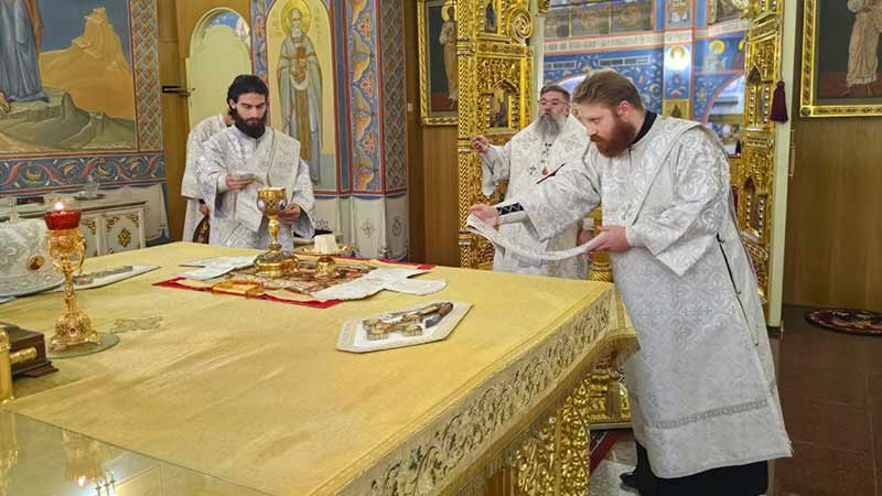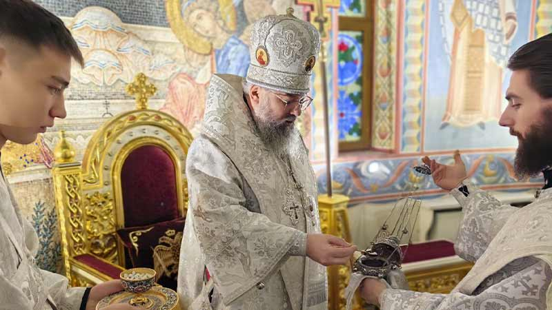 Его Высокопреосвященству сослужили ключарь кафедрального собора иерей Александр Брагин и соборное духовенство.