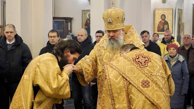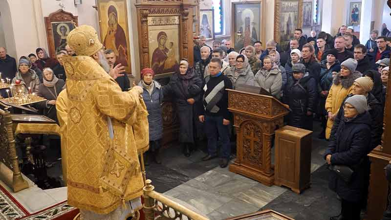 На сугубой ектении были вознесены особые прошения, архипастырь прочитал молитву о святой Руси.