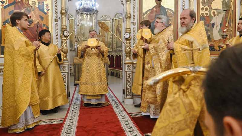 Накануне воскресного дня владыка Никанор совершил всенощное бдение в кафедральном соборе Рождества Христова г. Южно-Сахалинска.