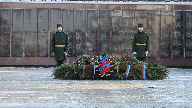 После минуты молчания участники церемонии возложили цветы и венки к Вечному огню. В память о воинах, не вернувшихся с полей сражений, прозвучало несколько ружейных залпов.