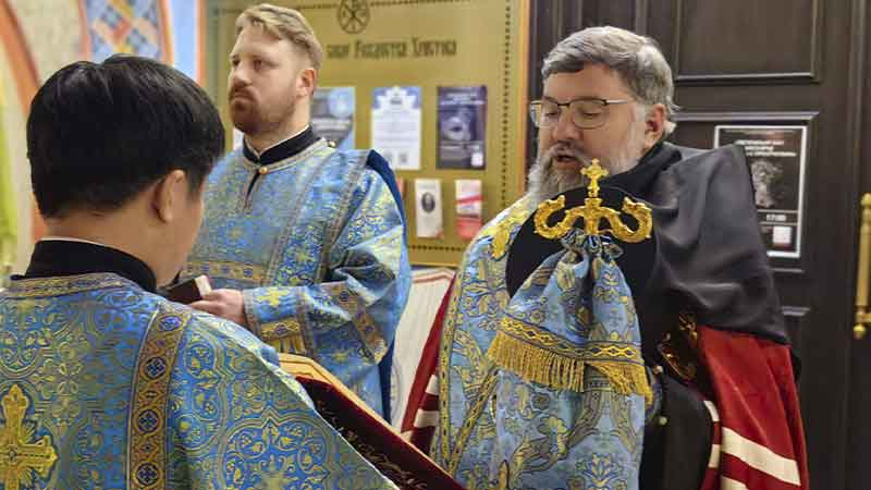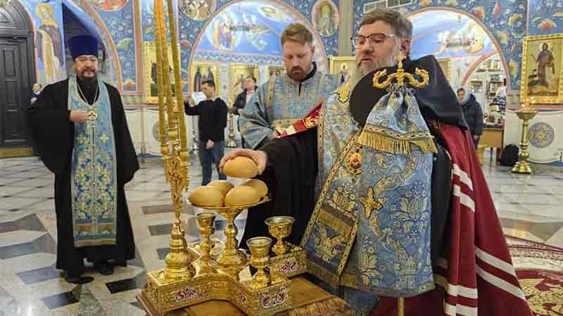 Его Высокопреосвященству сослужили настоятель храма свт. Луки г. Южно-Сахалинска протоиерей Андрей Чугунов, ключарь собора Александр Брагин и соборное духовенство.