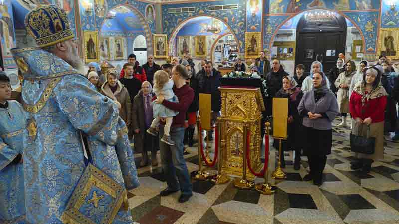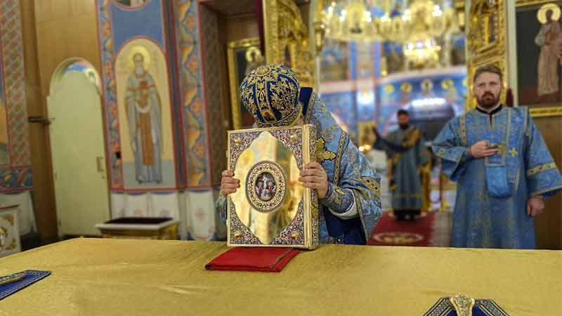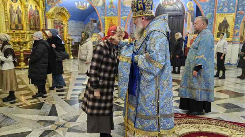 В завершение Литургии было совершено славление у иконы праздника, после чего владыка Никанор обратился к присутствующим со словом назидания.