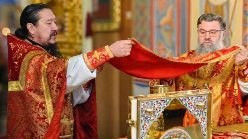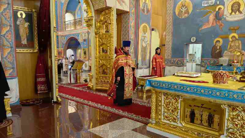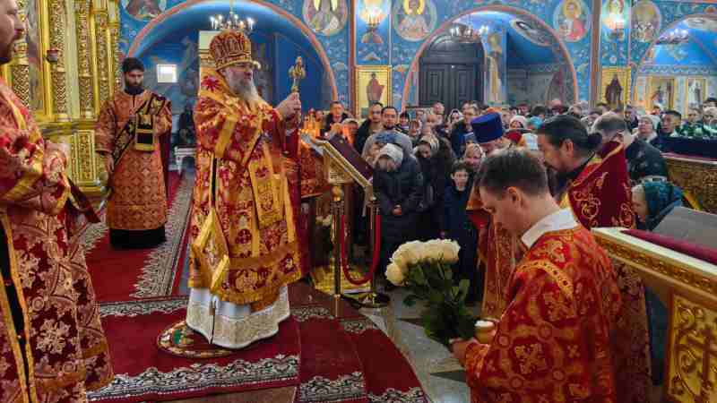 Его Высокопреосвященству сослужили настоятель Лукинского храма г. Южно-Сахалинска протоиерей Андрей Чугунов, ключарь собора иерей Александр Брагин и соборное духовенство.