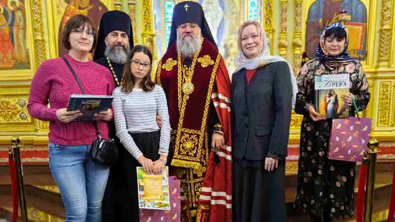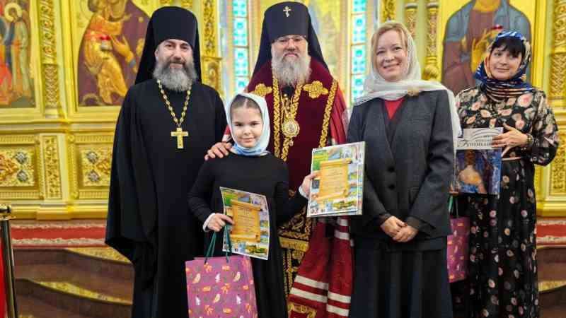 По завершении молебна архипастырь вместе с министром образования и заместителем министра культуры и архивного дела наградили победителей и призеров Всероссийского конкурса «Красота Божьего мира», а так же епархиального конкурса сочинений.