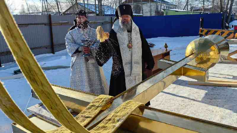 Архиепископ Никанор совершил освящение крестов, куполов и колоколов для храма в Смирных