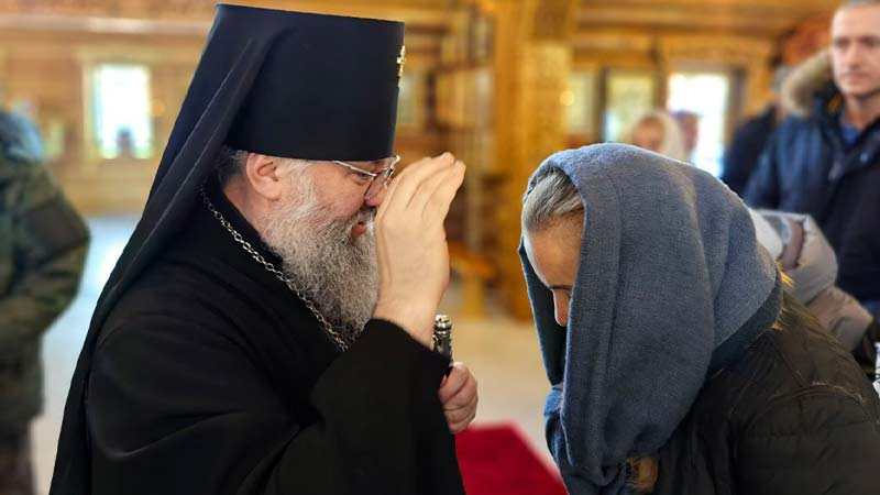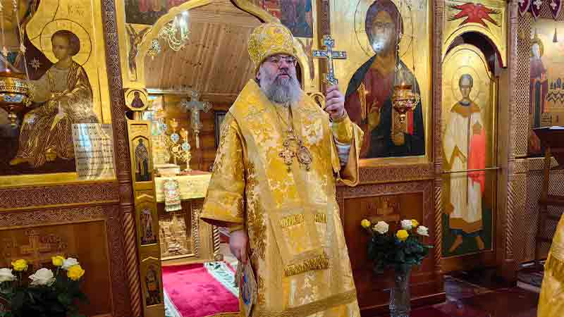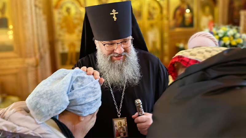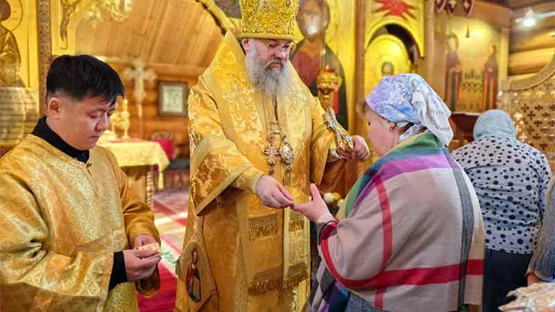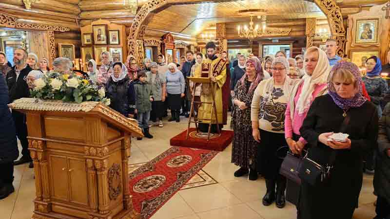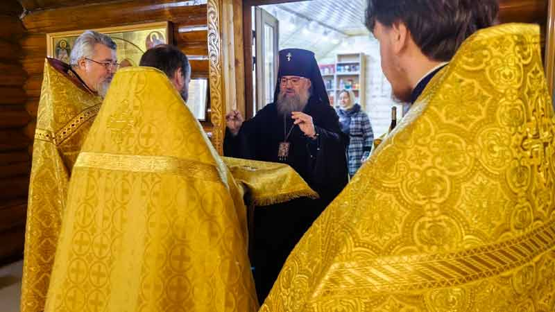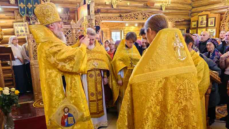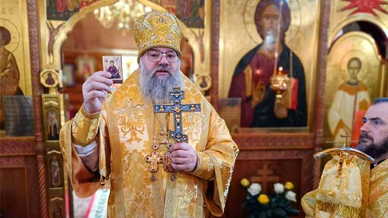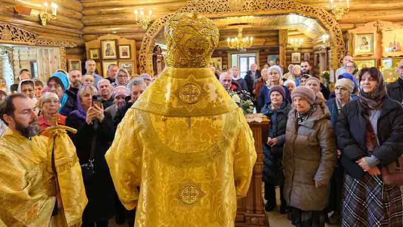 Далее владыка поздравил прихожан, настоятеля и духовенство с престольным праздником и обратился с проповедью. Всех присутствующих за богослужением иерарх благословил иконочками Пресвятой Богородицы.