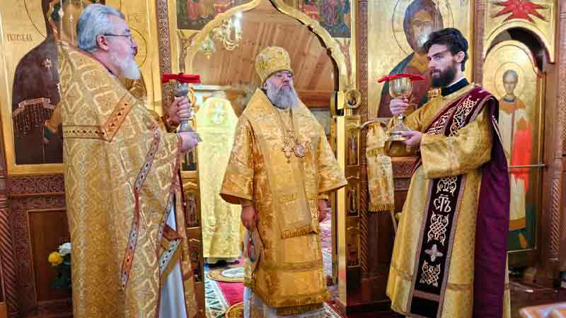 Его Высокопреосвященству сослужили секретарь епархии, настоятель Воскресенского собора Южно-Сахалинска иеромонах Аполлинарий (Обухов), благочинный Южно-Сахалинского городского церковного округа, настоятель храма протоиерей Павел Алексеев, руководитель епархиального отдела по социальному служению и церковной благотворительности протоиерей Максим Лобановский, заведующий канцелярией Южно-Сахалинского епархиального управления иеромонах Лавр (Немодин).