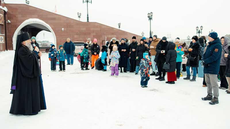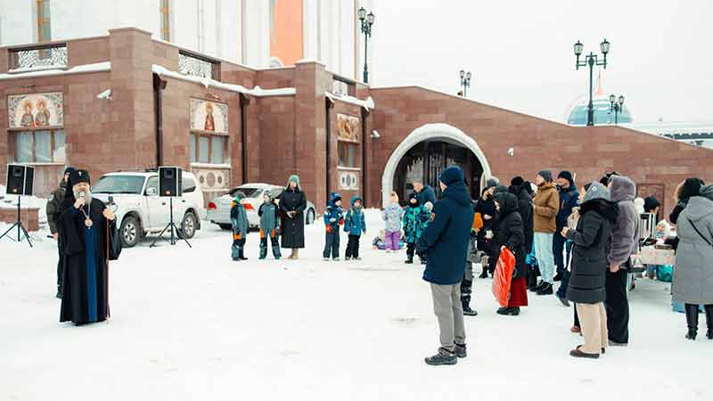 В завершение праздничного представления архиерей вручил детям рождественские подарки, а члены Русской Артели Сахалина организовали для всех участников праздника уличные гуляния.