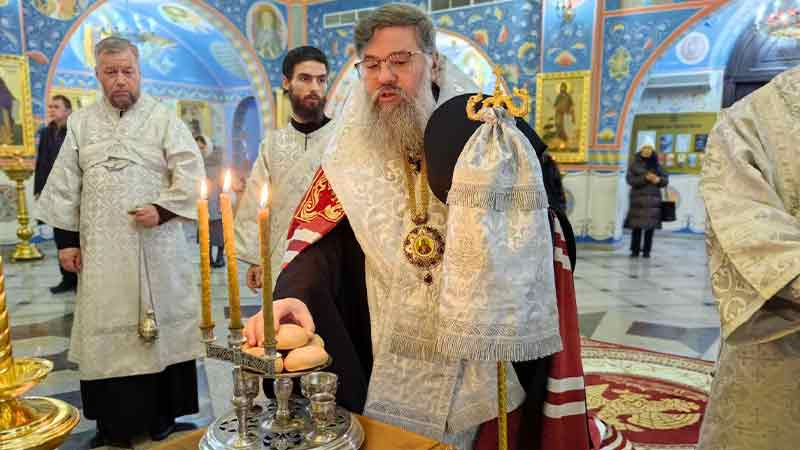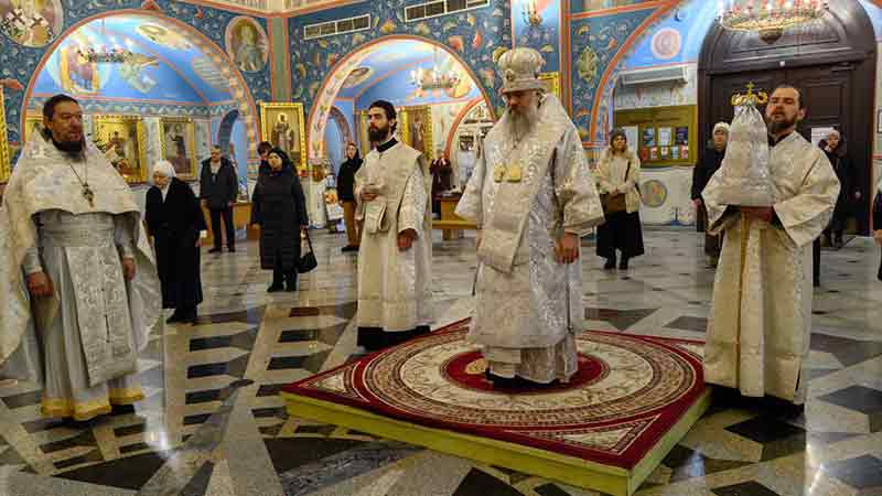 На сугубой ектении были вознесены особые прошения, далее архипастырь прочитал молитву о Святой Руси.