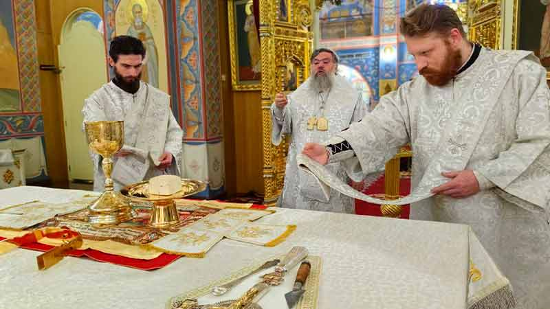 Его Высокопреосвященству сослужили настоятель храма свт. Луки г. Южно-Сахалинска протоиерей Андрей Чугунов и ключарь собора иерей Александр Брагин.