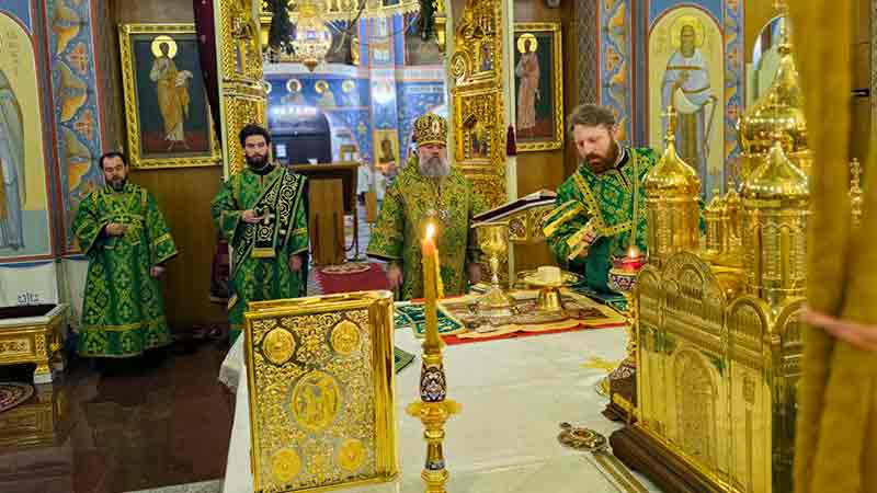 На сугубой ектении были вознесены особые прошения. После сугубой ектении владыка Никанор вознес молитву о Святой Руси.