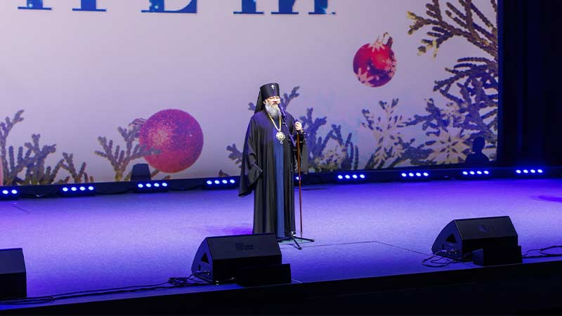 Архиепископ Никанор в своём обращении рассказал о значении Рождества Христова и важности передачи православных традиций молодёжи. Также Владыка выразил благодарность артистам арт-группы «Ларго» за большую просветительскую работу и внимание к островному региону, который коллектив посетил уже в четвёртый раз.