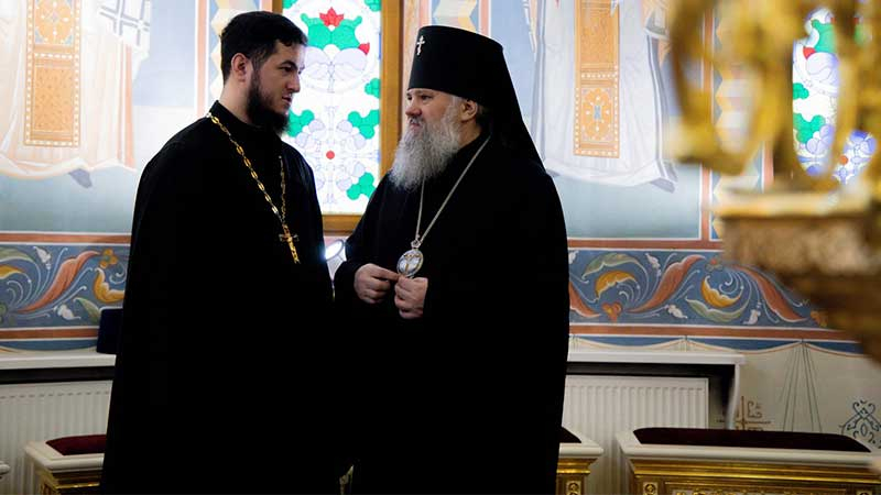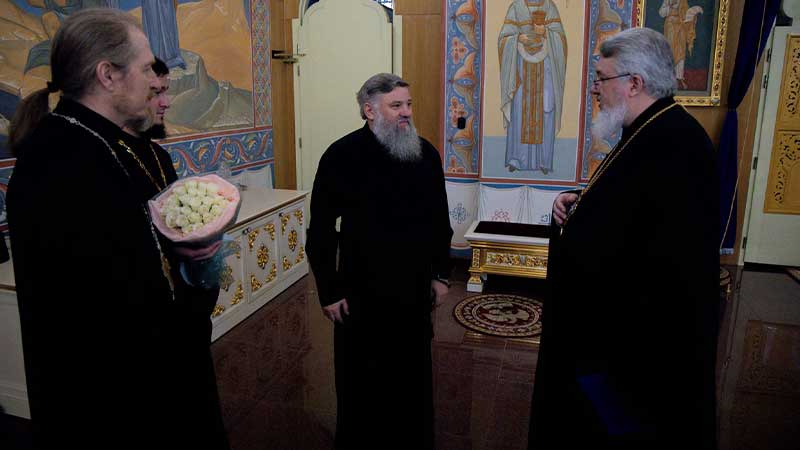По окончании богослужения в собор прибыли секретарь епархии, настоятель Воскресенского собора г. Южно-Сахалинска иеромонах Аполлинарий (Обухов), благочинный Южно-Сахалинского городского благочиния, настоятель Никольского храма г. Южно-Сахалинска, духовник епархии протоиерей Павел Алексеев, благочинный Южно-Сахалинского окружного благочиния, настоятель Иннокентьевского храма г. Южно-Сахалинска протоиерей Виктор Горбач, заведующий канцелярией Южно-Сахалинского епархиального управления иеромонах Лавр (Немодин), ключарь Воскресенского собора г. Южно-Сахалинска иерей Владислав Ивлютин и председатель Общественной палаты Сахалинской области Владимир Иконников.