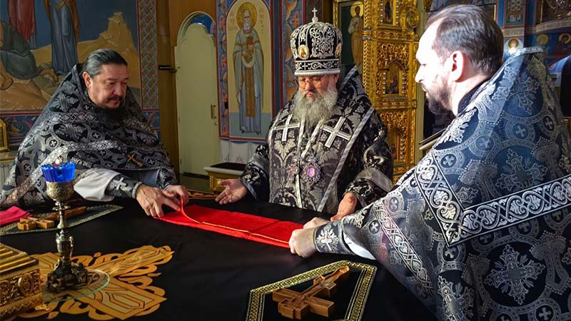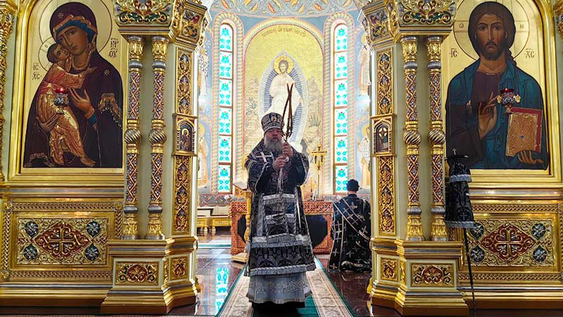 Его Высокопреосвященству сослужили настоятель Лукинского храма островной столицы протоиерей Андрей Чугунов и ключарь кафедрального собора иерей Александр Брагин.