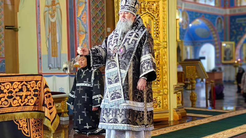 25 февраля, в среду первой седмицы Великого поста, архиепископ Южно-Сахалинский и Курильский Никанор совершил Божественную Литургию Преждеосвященных Даров в кафедральном соборе Рождества Христова г. Южно-Сахалинска.