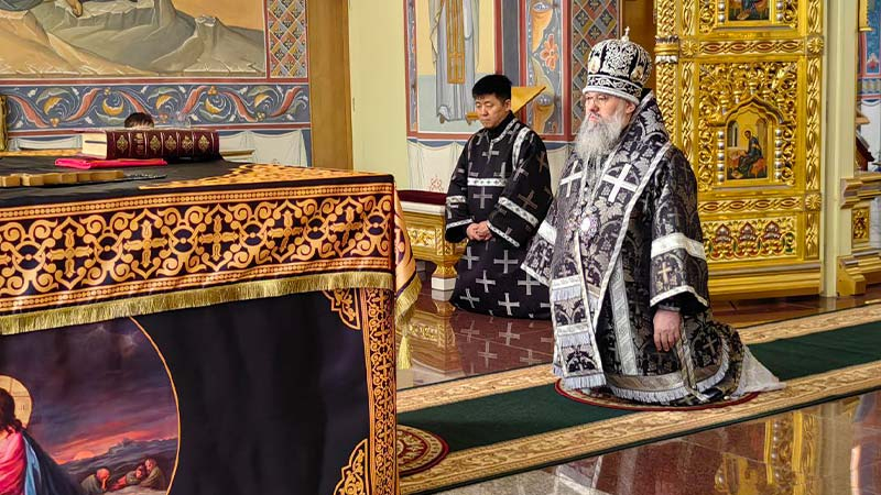 27 февраля, в пятницу первой седмицы Великого поста, архиепископ Южно-Сахалинский и Курильский Никанор совершил Литургию Преждеосвященных Даров в Христо-Рождественском кафедральном соборе г. Южно-Сахалинска.