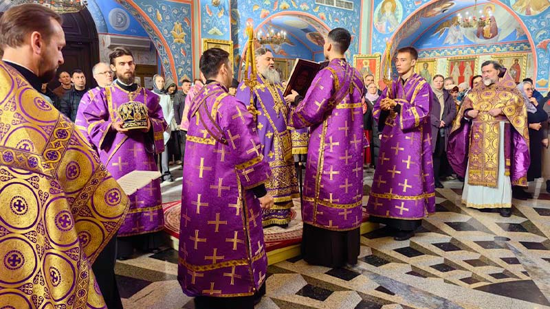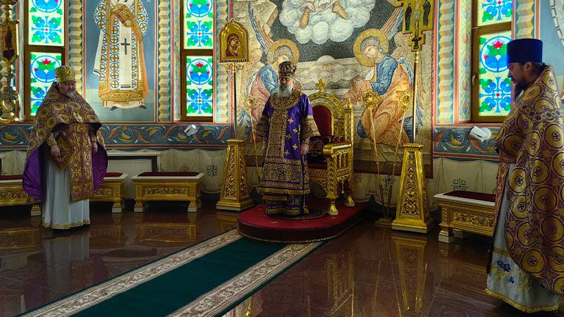 Накануне воскресного дня владыка совершил в кафедральном соборе всенощное бдение.