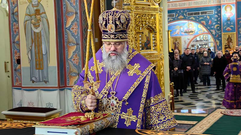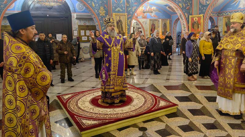 На сугубой ектении были вознесены особые прошения, далее архипастырь прочитал молитву о Святой Руси.