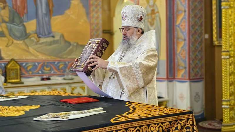 По окончании Литургии владыка совершил панихиду и обратился к прихожанам со словом проповеди.