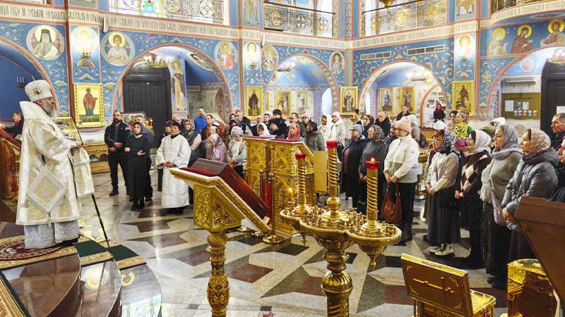 На сугубой ектении были вознесены особые прошения, далее архипастырь прочитал молитву о Святой Руси.