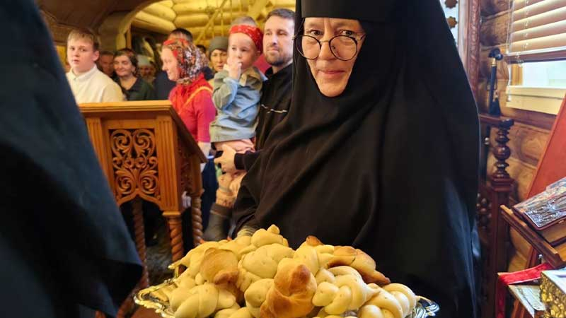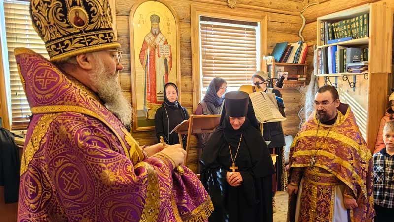За богослужением молились настоятельница монастыря игумения Арсения (Орлова) и сестры обители.
