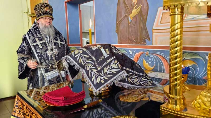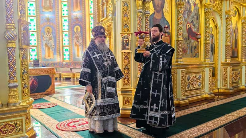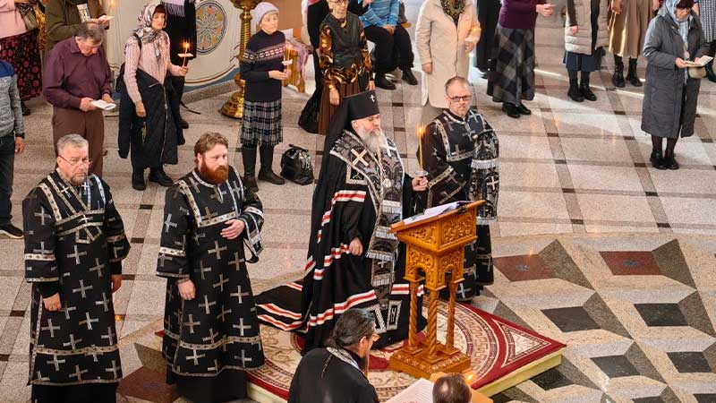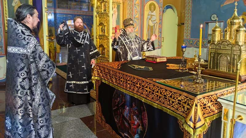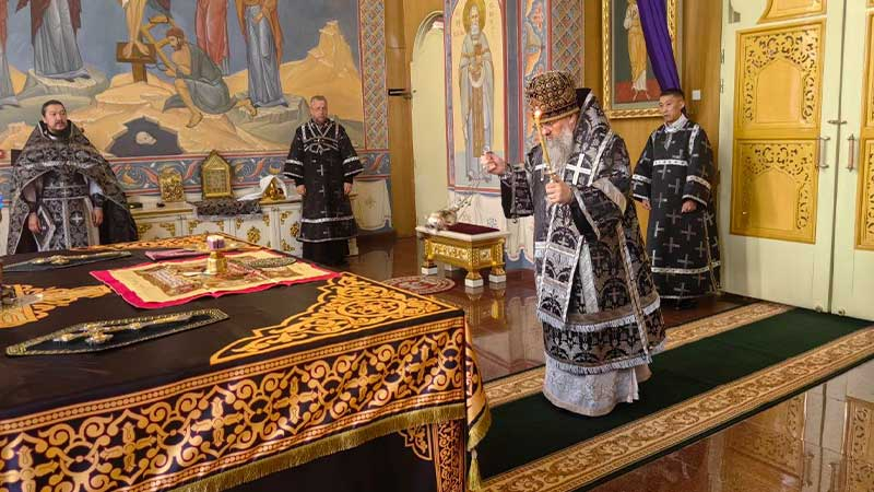 В четверг утром архипастырь возглавил в кафедральном соборе Божественную литургию Преждеосвященных Даров.