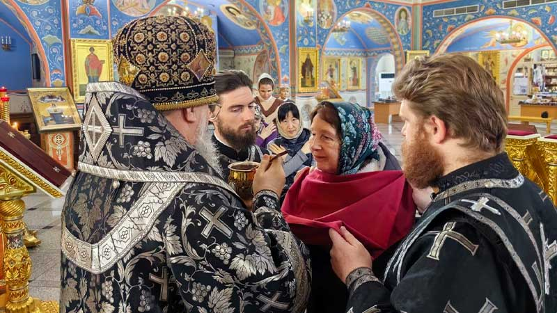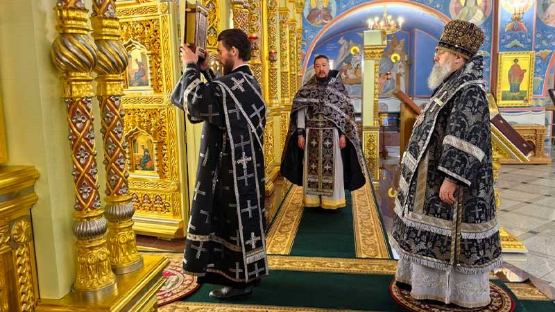 Вечером 25 марта архиепископ Южно-Сахалинский и Курильский Никанор в сослужении соборного духовенства совершил утреню четвертка Великого канона в Христо-Рождественском кафедральном соборе города Южно-Сахалинска.