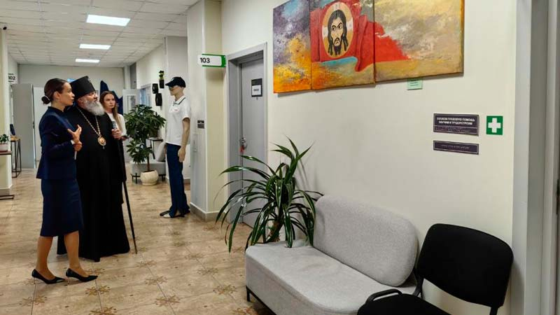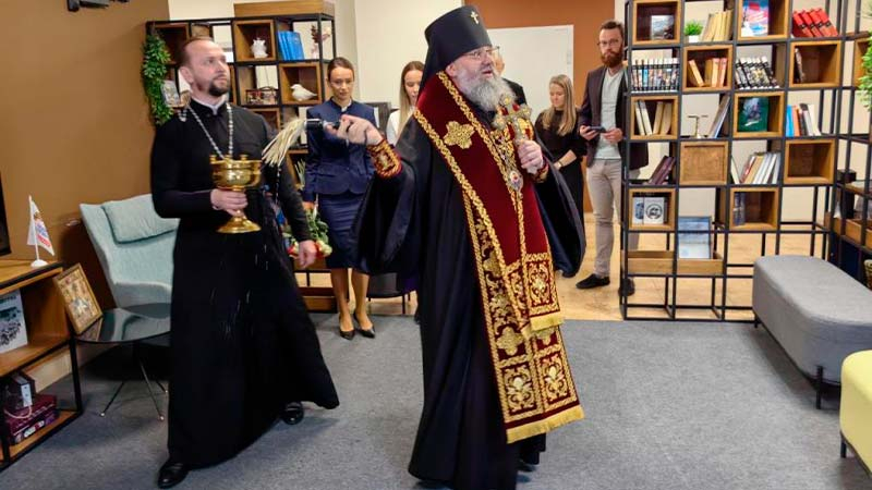 Владыка совершил чин освящения учреждения, после чего руководитель филиала Сабина Кушевская провела для архипастыря экскурсию, познакомив его с деятельностью организации.