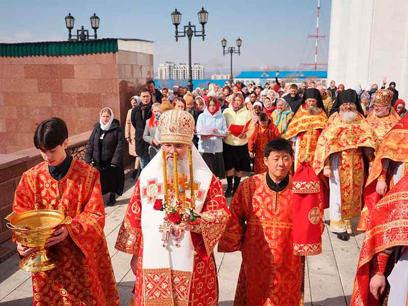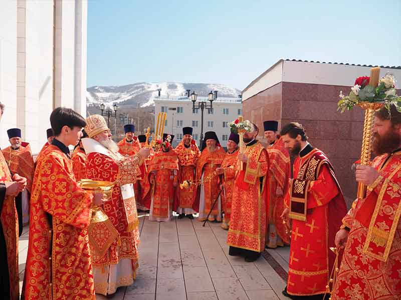 15 апреля, в среду Светлой седмицы, архиепископ Южно-Сахалинский и Курильский Никанор возглавил Божественную литургию в кафедральном соборе Рождества Христова г. Южно-Сахалинска.
