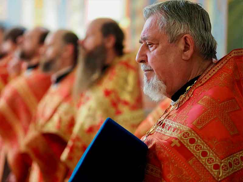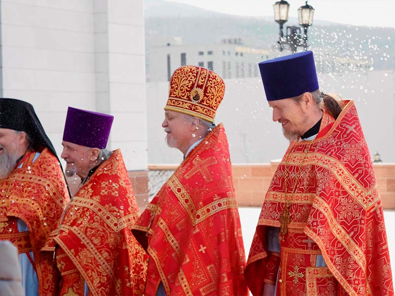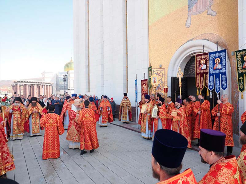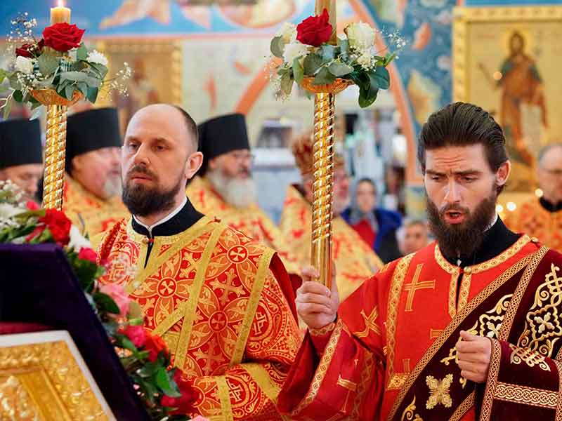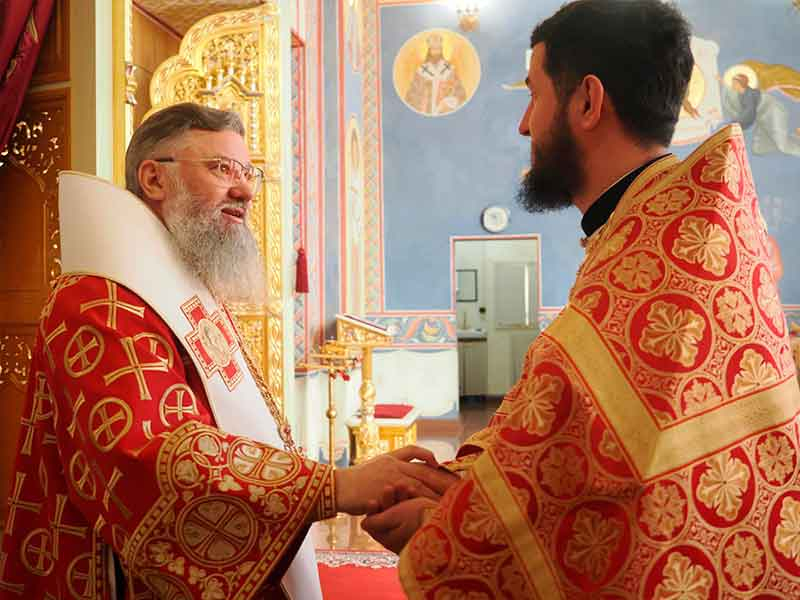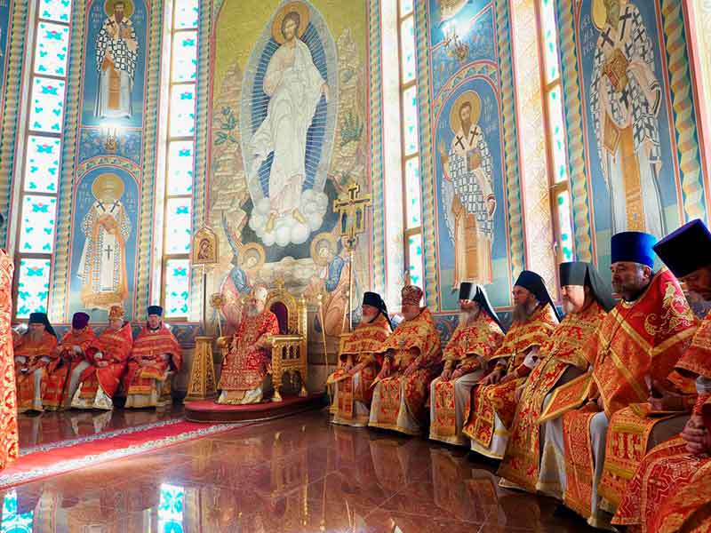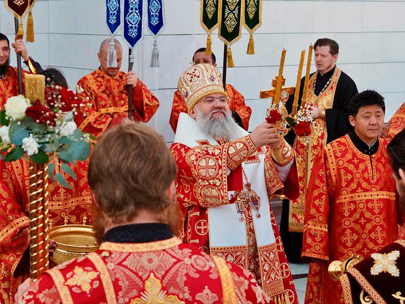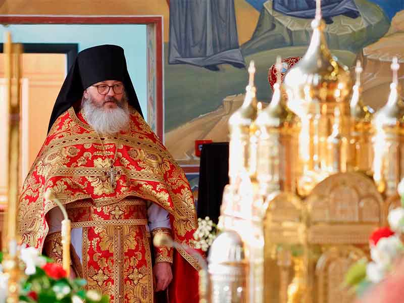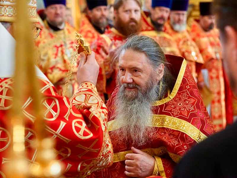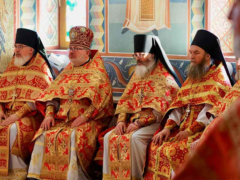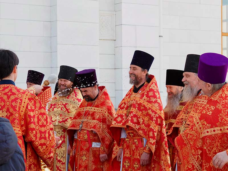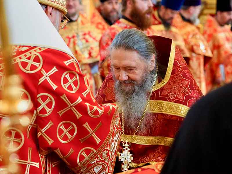 Его Высокопреосвященству сослужили:секретарь епархии, настоятель Воскресенского собора г. Южно-Сахалинска иеромонах Аполлинарий (Обухов);благочинный Южно-Сахалинского городского округа, настоятель Никольского храма г. Южно-Сахалинска протоиерей Павел Алексеев;благочинный Охинского округа, настоятель Сергиевского храма г. Охи протоиерей Георгий Журавель;благочинный Холмского округа, настоятель Никольского храма г. Холмска протоиерей Виктор Крылов;благочинный Долинского округа, настоятель Успенского храма г. Долинска протоиерей Вячеслав Каличава;благочинный Монастырского округа, наместник Покровского монастыря г. Корсакова игумен Алексий (Андреев),благочинный Курильского округа, настоятель Свято-Троицкого храма Юно-Курильска иеромонах Нестор (Елькин),благочинный Углегорского округа, настоятель Иоанновского храма г. Углегорска иерей Евгений Калашников,ключарь Воскресенского кафедрального собора г. Южно-Сахалинска иерей Владислав Ивлютини сонм духовенства Сахалинской епархии.
