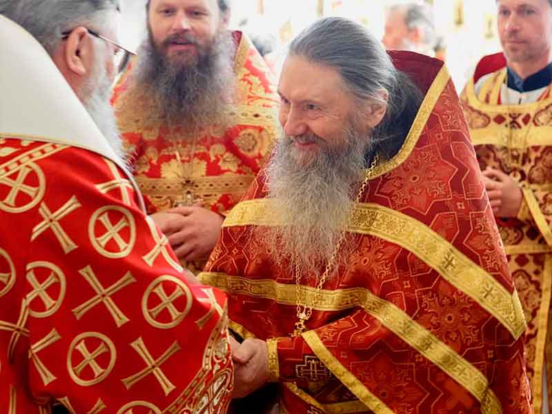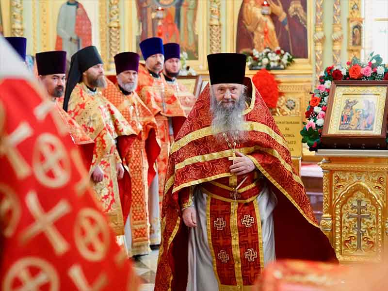 Права служения Божественной литургии с отверстыми Царскими вратами по «Иже Херувимы…» удостоен настоятель Сретенского храма пос. Смирных игумен Петр (Кривцов).