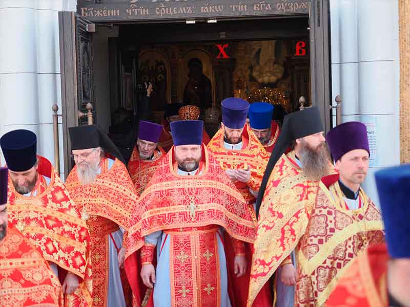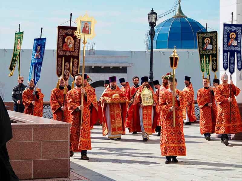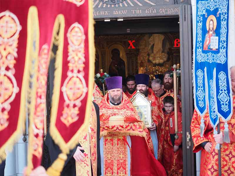 В завершение Литургии состоялся пасхальный крестный ход вокруг храма.