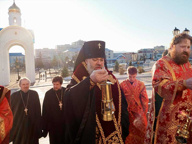 Вечером 15 апреля в Южно-Сахалинск из Хабаровска прибыл Благодатный огонь.
