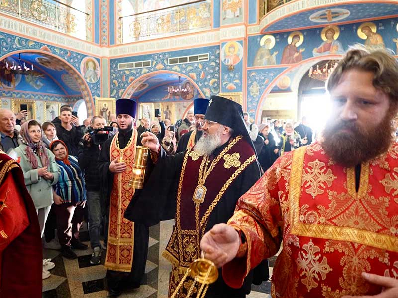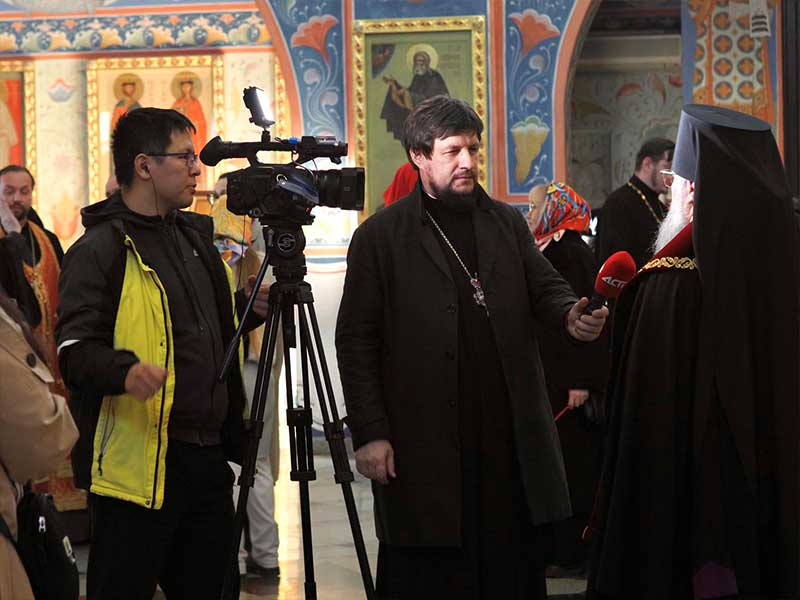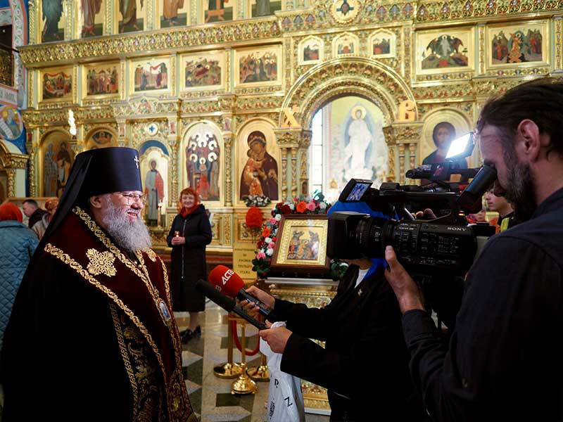 Из аэропорта святыня доставлена в кафедральный собор Рождества Христова г. Южно-Сахалинска, где была встречена архиепископом Южно-Сахалинским и Курильским Никанором, духовенством Южно-Сахалинской епархии и многочисленными верующими.